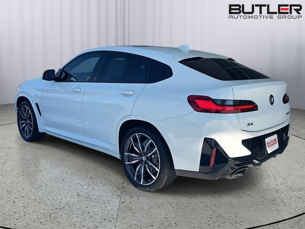 This 2024 BMW X4 is Alpine White with a Tacora Red Perforated Interior. It comes very well equipped with a Premium Package (Head Up Display, Comfort Access Keyless Entry, Heated Steering Wheel, Lumbar Support, Heated Front Seats), Driving Assistant Pro Package (Extended Traffic Jam Assistant, Active Driving Assistant Pro), Parking Assistance Package (Active Park Distance Control, Parking Assistant Plus, Rear View Camera, Parking View w/3D View), Shadowline Package (M Shadowline Lights, Extended Shadowline Trim), Automatic Transmission, 20" M Dual-Spoke BiColor Alloy Wheels, Wireless Charging, WiFi Hotspot (subscr.), Enhanced Bluetooth and Smartphone Integration, Navigation System, Apple CarPlay/Android Auto Compatible, Active Protection, SiriusXM Radio, Dual Zone Climate Control, Harman-Kardon Surround Sound System, Aluminum Trim, Galvanic Controls, Active Driving Assistant, Power Front Seats, Driver Seat Width Adjustment, Auto Dimming Mirrors, Universal Garage Door Opener, Decoding for No-Dazzle High Beam Assistant, Active Blind Spot Detection, Frontal Collision Warning w/ City Collision Mitigation, Lane Departure Warning, Ambient Lighting, Storage Package, Alarm System, Tire Pressure Monitor, Live Cockpit Pro (incl Navi.), Connected Package Pro, Privacy Glass, Remote Engine Start, BMW X4 Luggage Compartment Mat, Active Protection, Adaptive M Suspension, M Sport Brakes with Red Calipers, Carbon Fiber Trim, Increased Top Speed Limiter, and Daytime Driving Lights. This BMW X4 comes with a BMW/Certified Unlimited Mileage Warranty until 02/28/2029. Please ask for Internet Sales to receive this special internet offer!