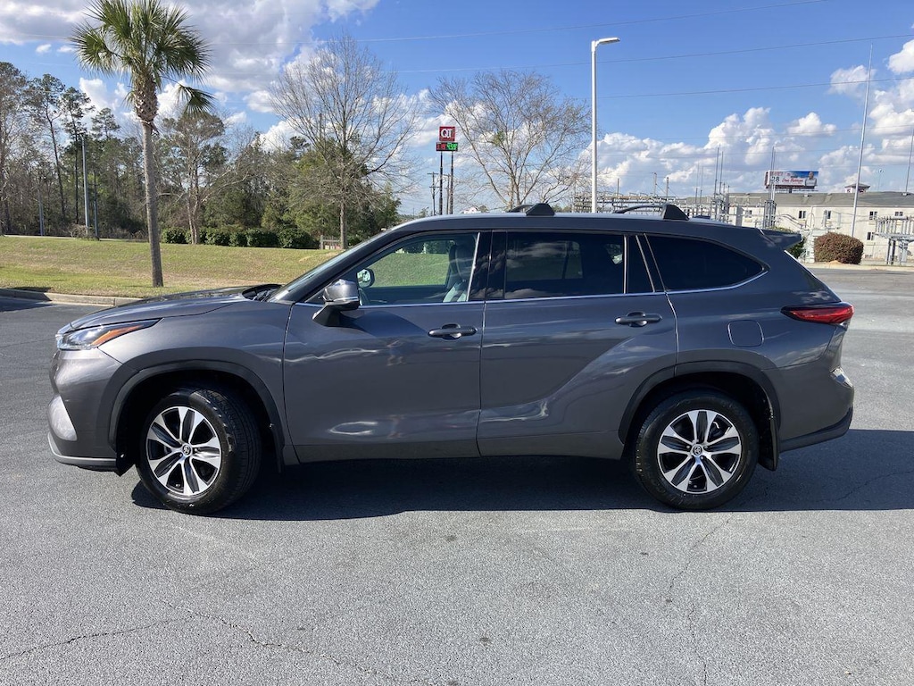 The color is called Magnetic Gray Metallic. The exceptionally well-cared for Highlander glows in the afternoon sun.